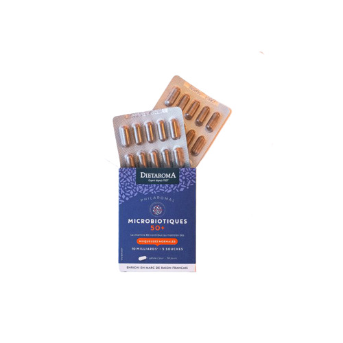 Découvrez le complément alimentaire Philaromal microbiotiques 50+,30 gélules de Dietaroma, avec 10 milliards de ferments de 5 souches différentes.