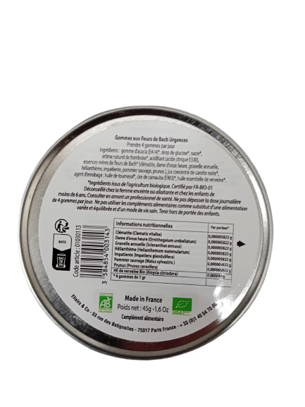 Les Gommes URGENCES Bio d’Elixir and Co sont spécialement conçues pour vous apaiser et vous recentrer dans les moments de tension ou de choc émotionnel. Inspirées du célèbre mélange Rescue® du Dr Bach, elles sont enrichies d’une touche unique avec deux fleurs supplémentaires et une huile essentielle de verveine exotique.