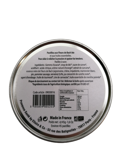 Découvrez le produit pastilles anti stress aux fleurs de Bach bio 45g de la gamme Provence santé du Laboratoire Elixir and Co.
