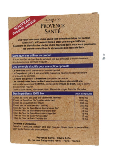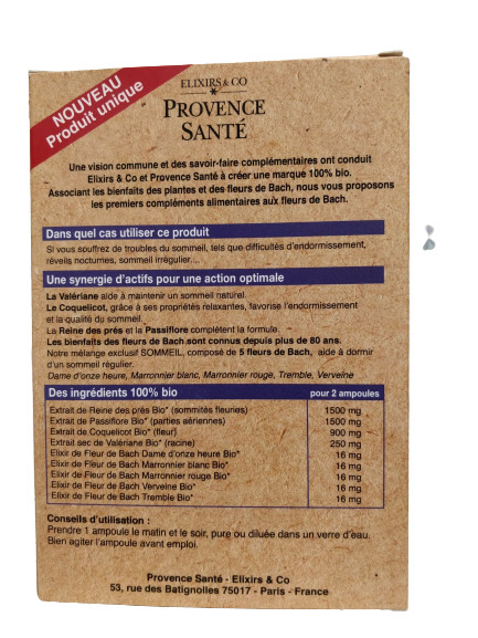 Découvrez le complément alimentaire sommeil, aux Fleurs de Bach et plantes de la gamme Provence Santé de chez Elixir&Co .