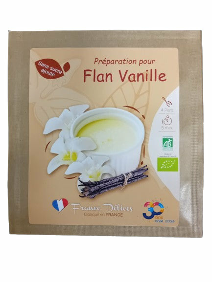 Une préparation dessert bio composée d'ingrédients naturels sélectionnés, avec un véritable extrait de vanille bio (15%),sans sucre, pour réaliser facilement un délicieux flan maison.