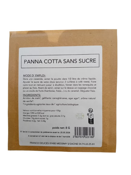 Découvrez la Préparation pour Panna Cotta Bio de France Délices, un délice lacté facile et rapide à réaliser, idéal pour une pause gourmande saine et bio.
