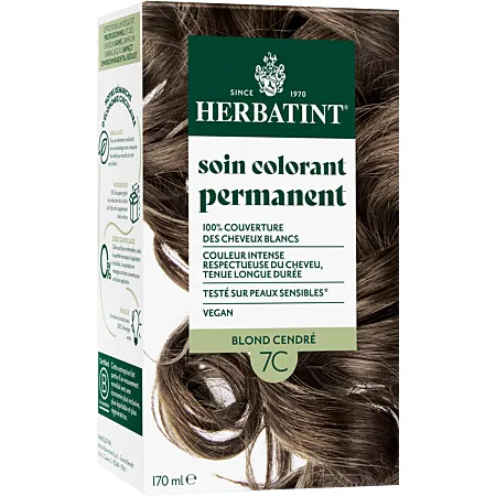 Découvrez la coloration naturelle Blond Cendré 7C, 170ml de chez Herbatint.