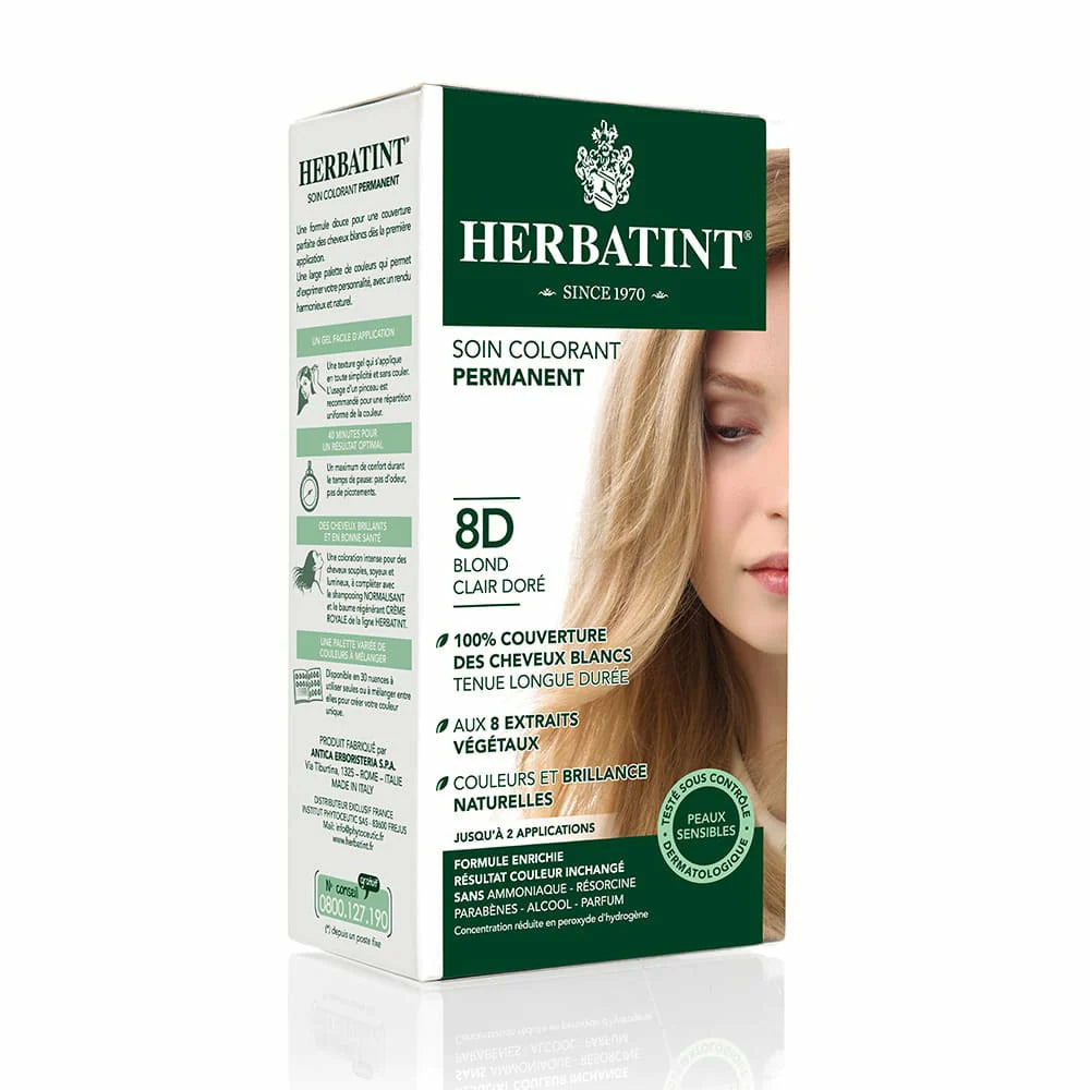 Découvrez la coloration blond clair doré, 8D, 170ml de chez Herbatint.
