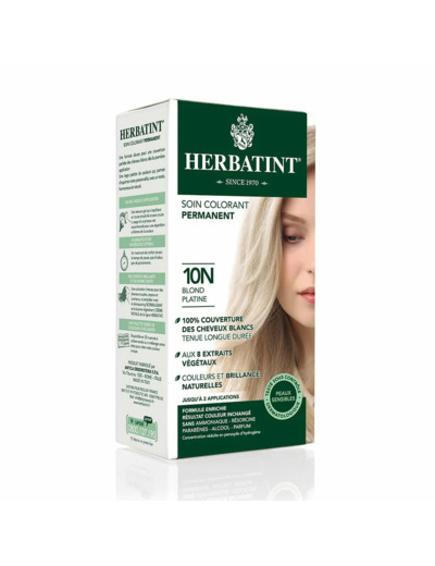 Découvrez la coloration naturelle blond platine,10N, 170ml de chez Herbatint.
