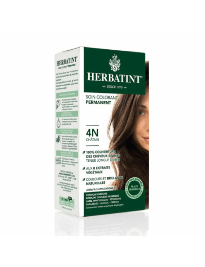 Découvrez la coloration naturelle châtain 4N, 150 ml de chez Herbatint.