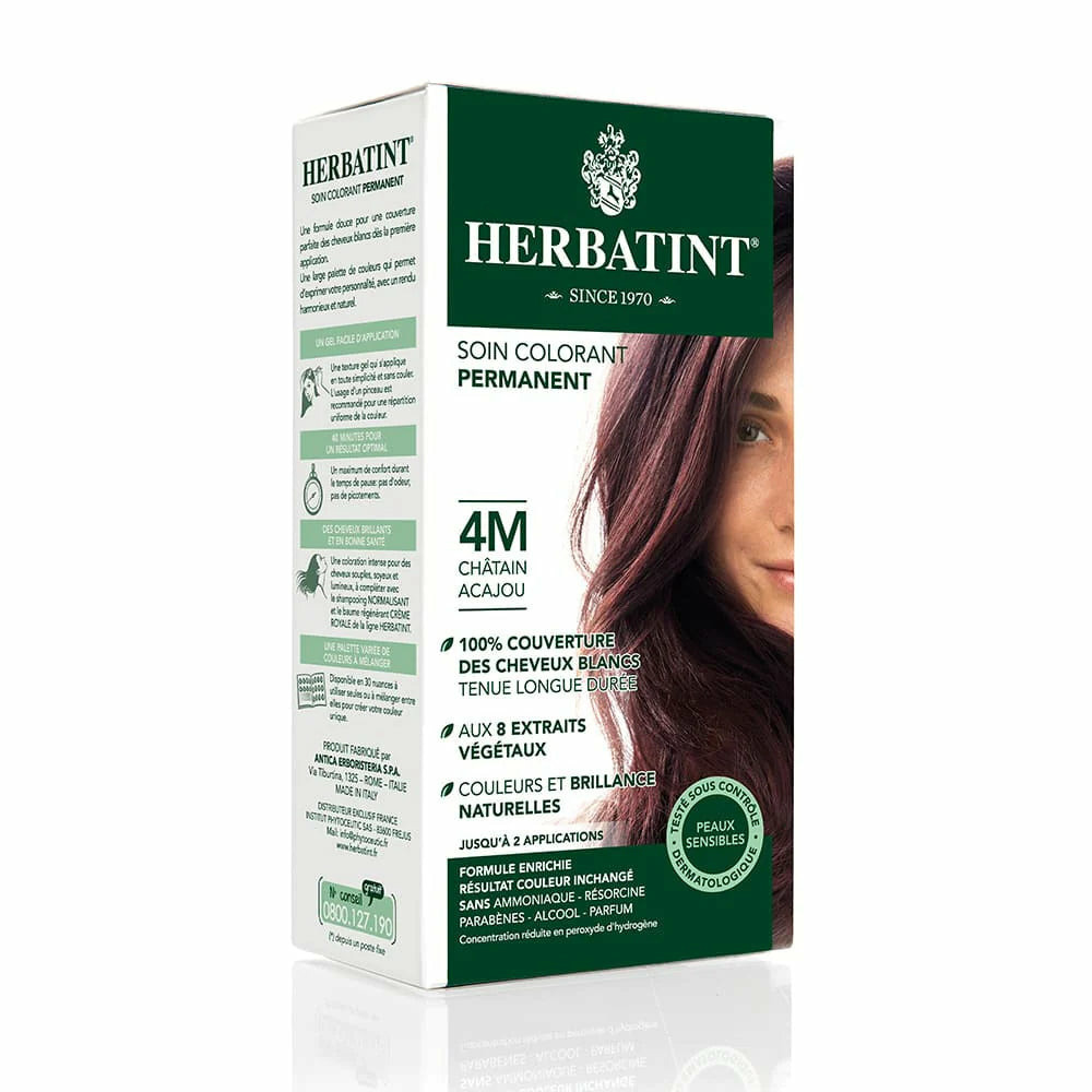 Découvrez la coloration naturelle châtain acajou 4M, 150ml de chez Herbatint.