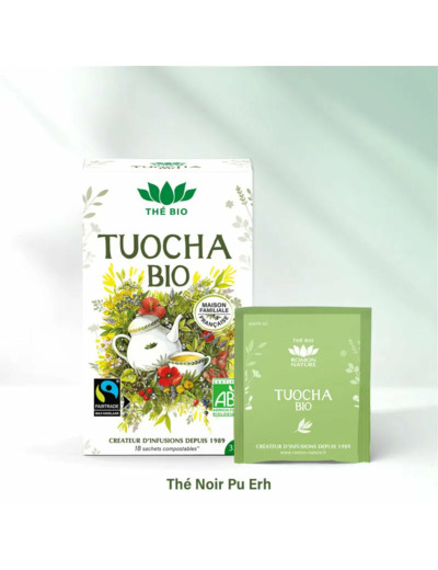Tuocha Bio – 18 Sachets est une infusion traditionnelle issue du thé Pu Erh du Yunnan, élaborée par Romon Nature, spécialiste des produits bio et équitables. Ce mélange unique rend hommage à un savoir-faire millénaire : les feuilles de Camellia sinensis, cueillies à la main par les ethnies autorisées, subissent un rituel de flétrissage, séchage, fermentation par sudation et torréfaction pour développer une couleur sombre et des arômes intenses :