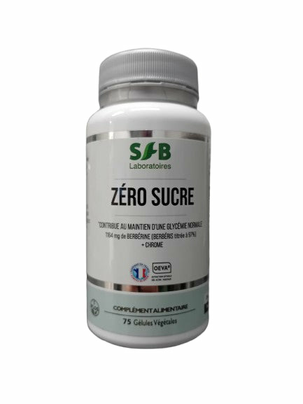 Maîtrisez votre glycémie naturellement avec Zéro Sucre (Berbérine + Chrome) – 75 gélules – SFB Laboratoires, un complément alimentaire bio, vegan et sans gluten, conçu pour réguler la glycémie et soutenir la santé métabolique. Formulé avec un extrait de berbéris titré à 97 % en berbérine (1164 mg pour 4 gélules) et du chrome, ce complément améliore la sensibilité à l’insuline, réduit les envies de sucre et favorise un métabolisme équilibré. Idéal pour les personnes cherchant à gérer leur glycémie ou à soutenir leur santé cardiovasculaire, ce produit offre une solution pratique et naturelle, à condition d’être utilisé sous avis médical.