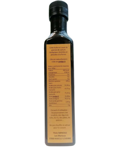 Découvrez l'huile vierge de Chanvre Bio de Touraine, 0.25L de Théo Meneau.