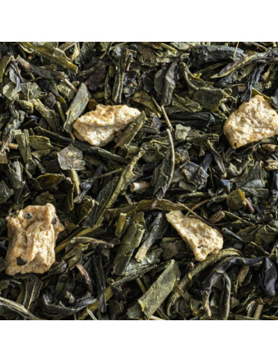 Thé vert bio, arôme naturel de mangue, morceaux de pêche bio, arôme naturel de pêche, huile essentielle d'orange bio.