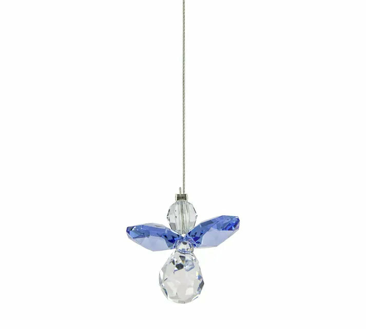 Description : Ange en cristal premium embelli avec des éléments saphir, câble d’acier gainé de silicone pour une suspension sûre et élégante.