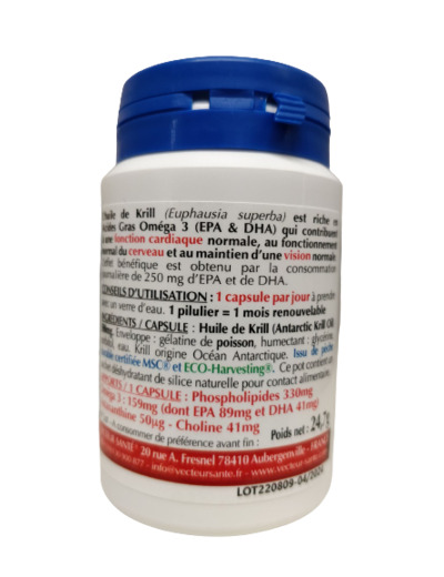 Découvrez le complément alimentaire Huile de Krill 500 mg 30 capsules du Laboratoire Vecteur santé.