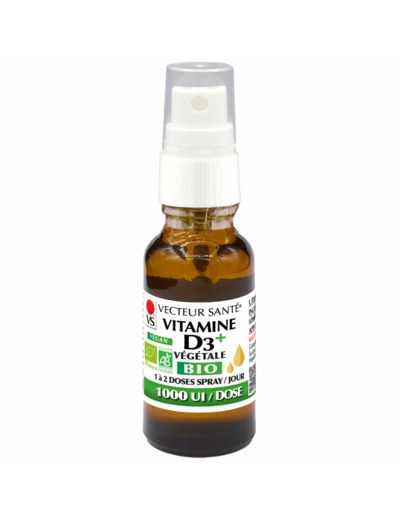Découvrez la Vitamine D3+ végétale Bio Spray – 20 ml – Vecteur Santé, une source végétale de vitamine D3 (cholécalciférol) issue de lichen bio, enrichie en huile d’olive bio, pour un soutien immunitaire, osseux et musculaire optimal ! Chaque pulvérisation délivre 1000 UI (25 µg, 500 % des VNR), favorisant l’absorption du calcium, la fonction immunitaire et une vitalité accrue, particulièrement en cas d’exposition solaire limitée. Végétal, sans OGM, fabriqué en France, ce spray de 200 doses est idéal pour toute la famille, facile à utiliser et bio-disponible. Commandez sur Pleine-forme.net pour une immunité renforcée et une énergie durable au quotidien !