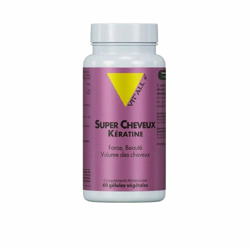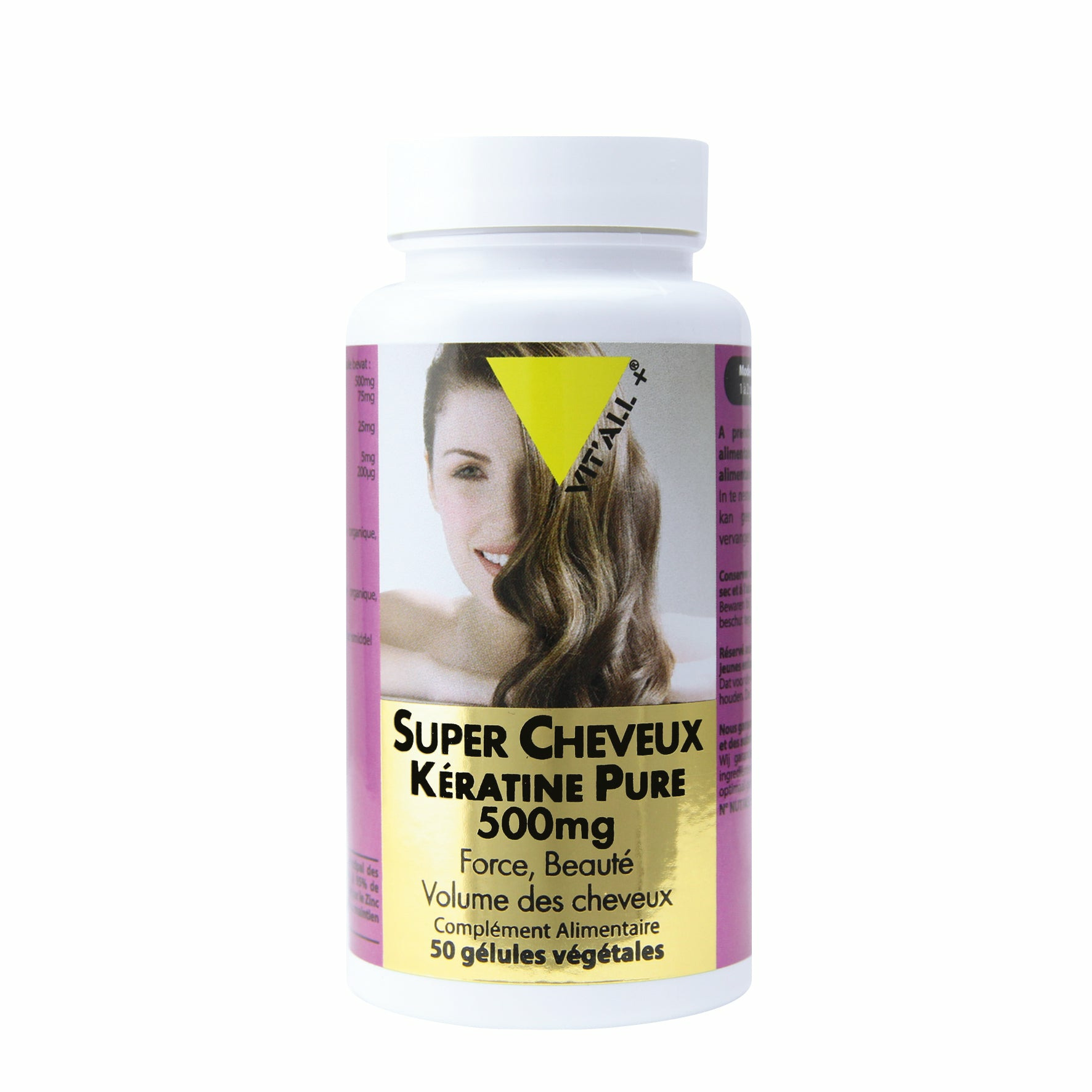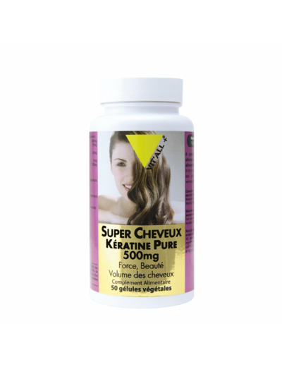 Découvrez le complément alimentaire Super cheveux+kératine pure, 500 mg, 50 gélules du laboratoire Vit'all+ .