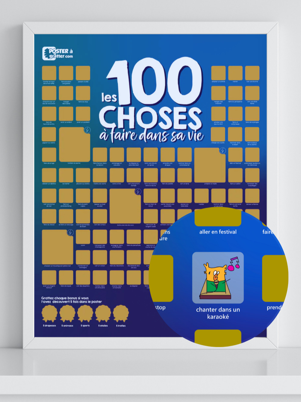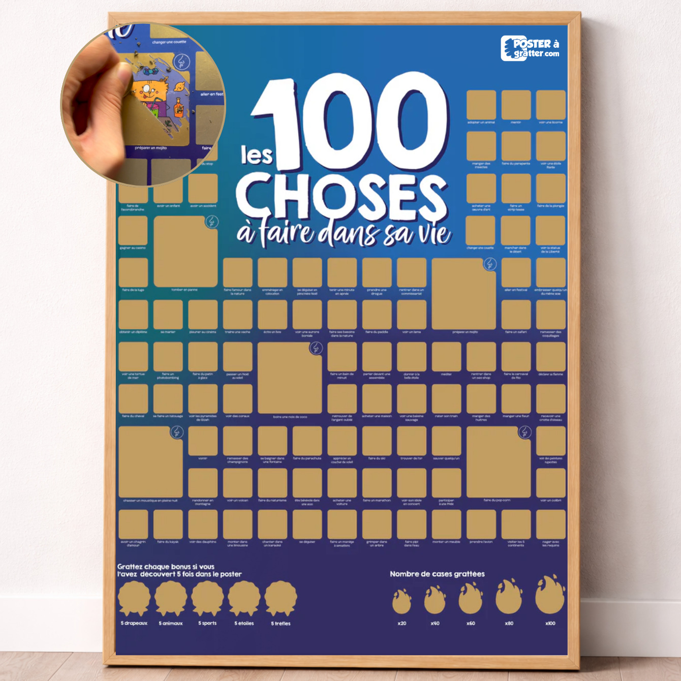 C’est un jeu, un défi et une machine à souvenirs réunis dans un seul poster. Fixez-vous un objectif, grattez, sentez, vivez… et recommencez !