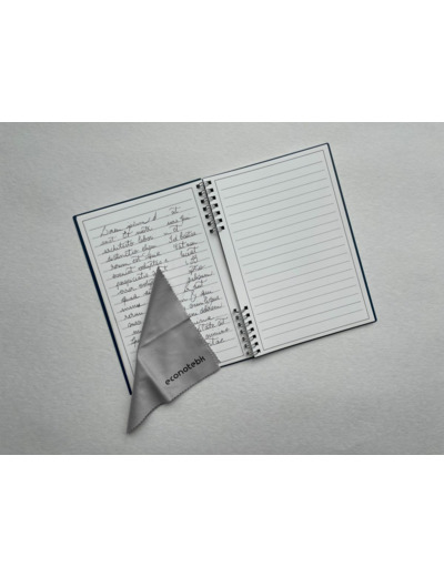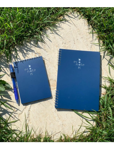 En partenariat avec une jeune start’up de Montpellier, je vous propose ce cahier d’un nouveau genre, écoresponsable et made in France. L’investissement RSE par excellence ! Ecrivez, effacez et recommencez … Un cahier d’apparence classique, en format bloc-notes A6 ou carnet A5, sur lequel on peut écrire avec un stylo gel effaçable. L’encre s’efface de différentes manières : soit avec l’effaceur situé sur le stylo gel, soit avec un chiffon humide, soit avec un sèche-cheveux. Le cahier réutilisable est donc idéal pour prendre des notes en réunion, à l’école, ou pour servir de brouillon. Son contenu peut être scanné via l’application CamScanner disponible sur IOS et Android, et ainsi être sauvegardé dans le Cloud, et partagé par smartphone. Une solution écologique et économique : plus besoin d’acheter de nouveaux cahiers systématiquement ! Des feuilles de papier écologique: – résistant à l’eau, aux graisses, et même au café 😉 – au toucher doux – indéchirable – recyclable – réutilisable jusqu’à 1000 fois Fourni avec 1 stylo gel, 1 support-stylo adhésif, 1 lingette, 1 vaporisateur