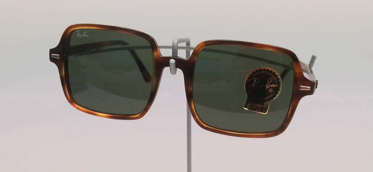 La RB 1973 954/31 est une monture en plastique écaille rayé avec des verres vert G-15, pour du rétro en tous temps.