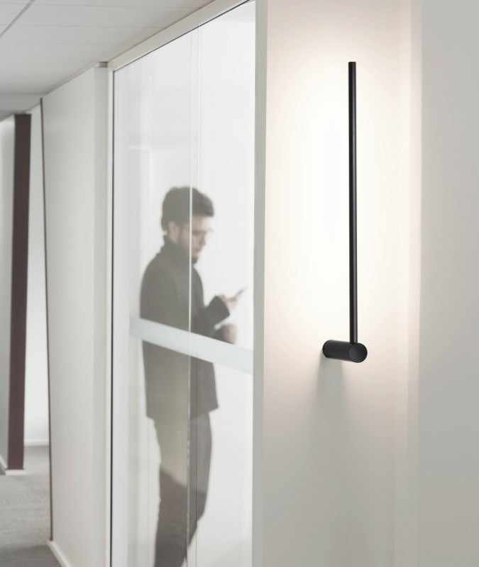 Profilé en aluminium avec diffuseur en PMMA et pièce de jonction acier finition peinture époxy noir satin. Ref : AP-IV0007