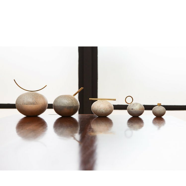 Depuis Minas Gerais, ALVA travaille - entre autres matériaux - avec de la pierre ollaire, un matériau typique de l'État. C'est à la fois un matériau résistant et doux, facile à façonner en de nombreuses formes polyvalentes, sculpturales ou utilitaires. Une autre particularité de la pierre à savon est sa large gamme de couleurs, et parce qu'il s'agit d'un matériau naturel, chaque pièce présente une tonalité de couleur unique.