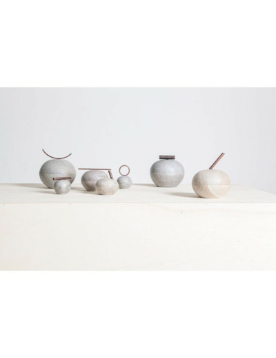 Depuis Minas Gerais, ALVA travaille - entre autres matériaux - avec de la pierre ollaire, un matériau typique de l'État. C'est à la fois un matériau résistant et doux, facile à façonner en de nombreuses formes polyvalentes, sculpturales ou utilitaires. Une autre particularité de la pierre à savon est sa large gamme de couleurs, et parce qu'il s'agit d'un matériau naturel, chaque pièce présente une tonalité de couleur unique.