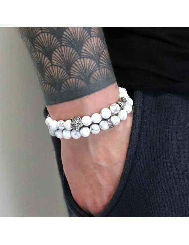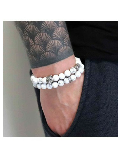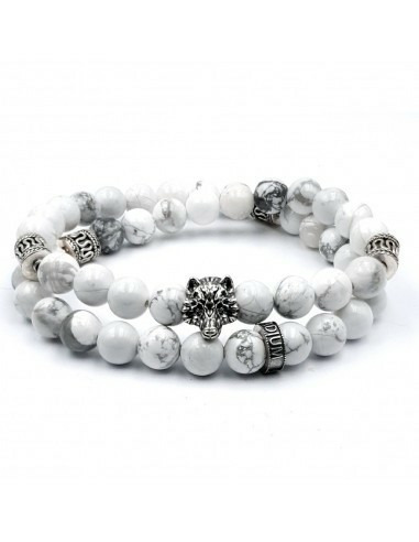Le Howlite est utilisée par les Indiens d'Amérique comme pierre chamanique, on lui prête également des pouvoirs de guérison. Grâce à son aspect marbré, la Howlite blanche fait de votre bracelet une pièce rare. Garantie à vie dans le cadre d'une utilisation normale.