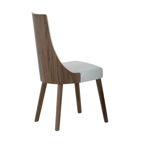 Chaise écopelle MILA blanc structure bois placage noyer