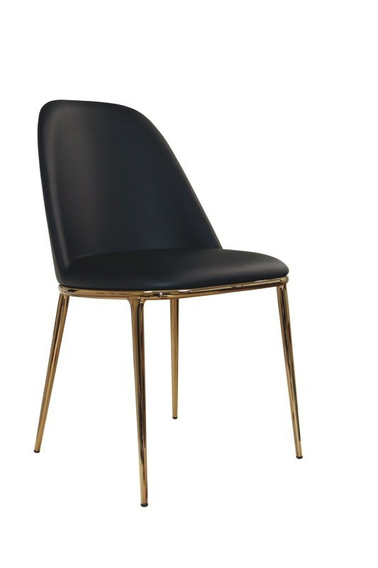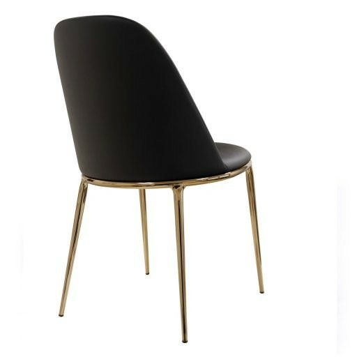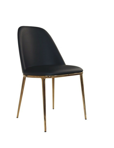 Chaise tissu ecopelle LEA Noir piètement en acier bronze doré