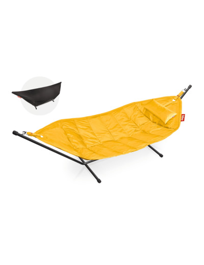 Le Fatboy Headdemock est un grand hamac de luxe pouvant accueillir jusqu’à deux personnes (ou jusqu’à 150 kg). Tu ne dépendras plus d’une corde ou d’un arbre pour accéder au bonheur. Headdemock est un hamac pliable et compact prêt à renverser tous les codes. Grâce à ce hamac Fatboy avec un support, accroche-le comme tu le souhaites et crée ta propre expérience sans soucis. Le grand hamac est en polyester durable et le cadre est fabriqué en métal et caoutchouc. Grâce au tissu hydrofuge, antisalissures et résistant aux UV, tu apprécieras ce chef-d’œuvre pour les années à venir. Le Headdemock est un hamac pliable livré avec un sac de transport assorti. Cela le rend encore plus pratique, car tu peux facilement le ranger à la fin de l’été.