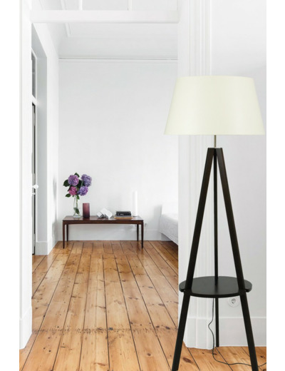 Des finitions irréprochables pour ce lampadaire DELPHES teinté wengué... Son trépied en chêne et sa tablette centrale lui apportent une allure à la fois classique et contemporaine. Il est de plus surmonté d'une chandelle en chrome et d'un imposant abat jour conique en tissu écru. Un modèle majestueux qui trônera avec élégance dans votre intérieur.