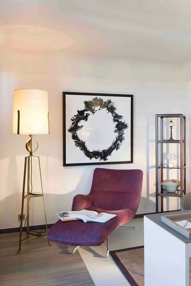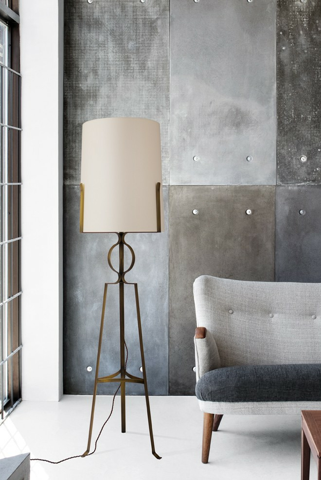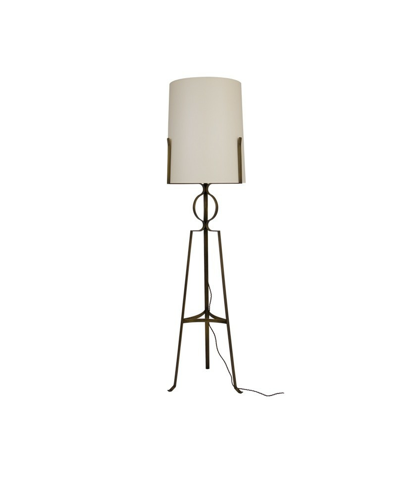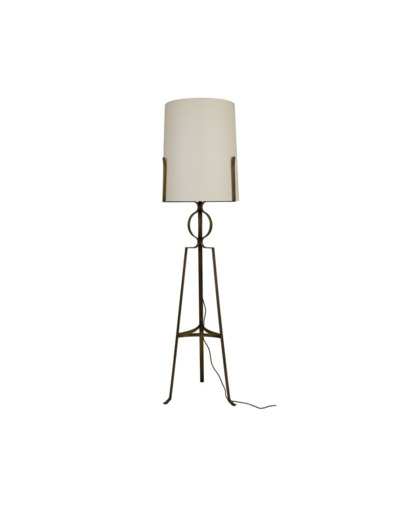 Son abat jour conique en tissu écru, surmontant un trépied en laiton forgé en finition laiton patiné lui confère une allure chic et singulière. Par sa taille et son élégance, ce lampadaire trouvera sa place tout à la fois dans de grandes volumes (Hall, Salon) et également dans des lieux plus intimistes (chambre, bureau)
