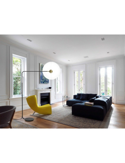 Un lampadaire de grande envergure, réglable, avec un éclairage doux sur un voile tendu