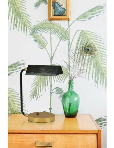 Finition noir lisse satiné et Or, avec ampoule accessible à l'oeil par la tôle ajourée, créé un éclairage ludique composant ainsi une lumière tamisé dans votre pièce de vie. La lampe ELDA est également munie d'un petit interrupteur rétro sur son socle, pour un accès plus aisé et un meilleur confort d'utilisation.