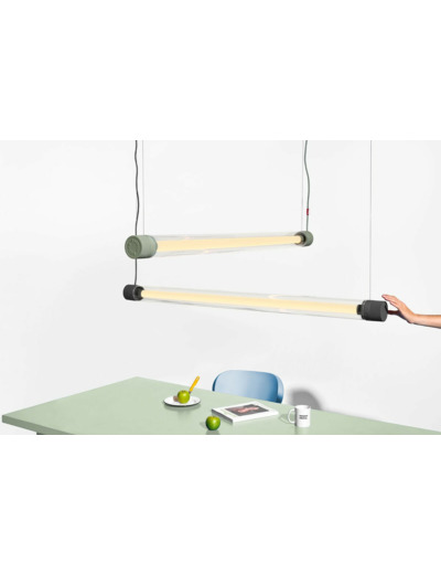 La Fatboy Tjoep est une lampe fluorescente à l’ancienne qui a fait peau neuve. Ce tube fluorescent LED réglable n’est pas seulement disponible en versions Small (50 cm) ou Large (150 cm), il se décline aussi dans un panel de couleurs délicates. Tourne le gros bouton à l’extrémité pour changer la direction du faisceau lumineux. Dirige la lumière vers l’endroit que tu veux éclairer, ou tourne-la vers le mur ou le plafond pour une ambiance tamisée. C’est le tube idéal à accrocher au-dessus de ta table à manger, de ton atelier et de ton bureau. Si tu préfères les ambiances cosy, il suffit de le fixer au mur de ton choix. Quoi qu’il en soit, avec le kit de montage mural et au plafond inclus, les deux options sont très simples. Il en va de même pour le nettoyage de l’ensemble de ce luminaire fluorescent à LED.