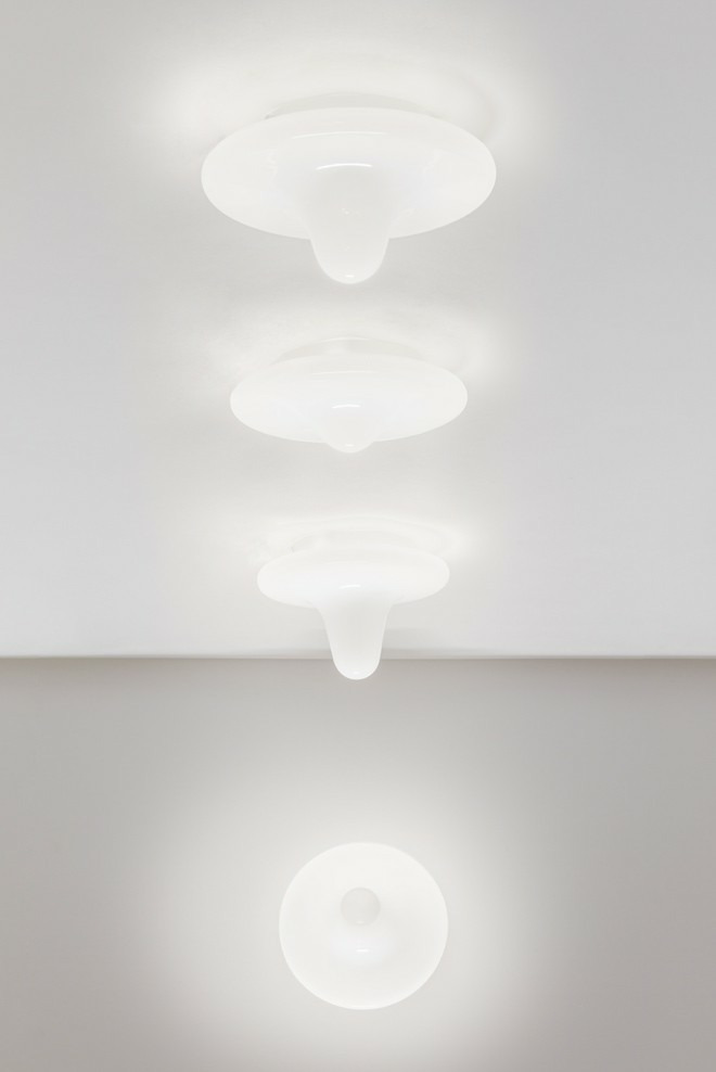 DRIP est une série de plafonniers en verre opalin au design original rappelant une goutte d'eau. Un jeu visuel se crée entre les trois plafonniers dont la goutte est plus ou moins basse d'un modèle à l'autre.