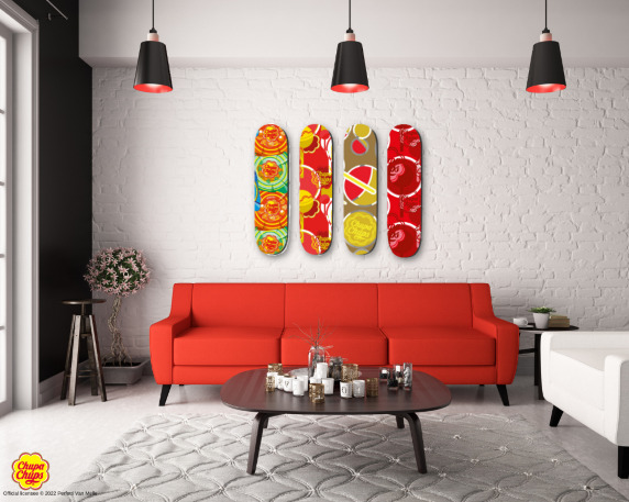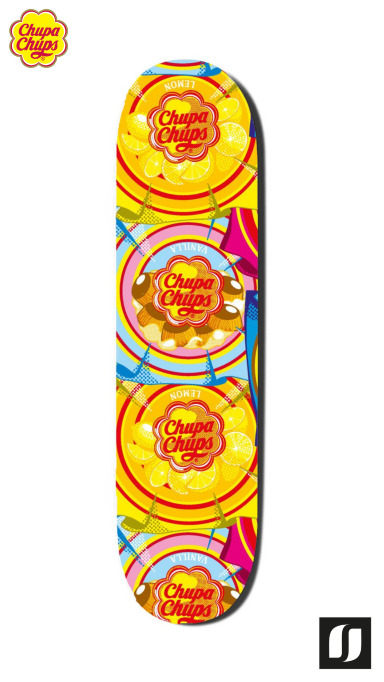 Collection de Skateboards Skate Chupa Chups 70's made in France à l’éthique éco-responsable. Planche de 7 plis en Erables Canadien Série fabriquée en édition limitée sous licence CHUPA CHUPS. Chaque Skate est numéroté, signé et délivré avec un certificat d'authenticité. Possibilité du choix de la finition : en mat ou en brillant selon les goûts de chacun.