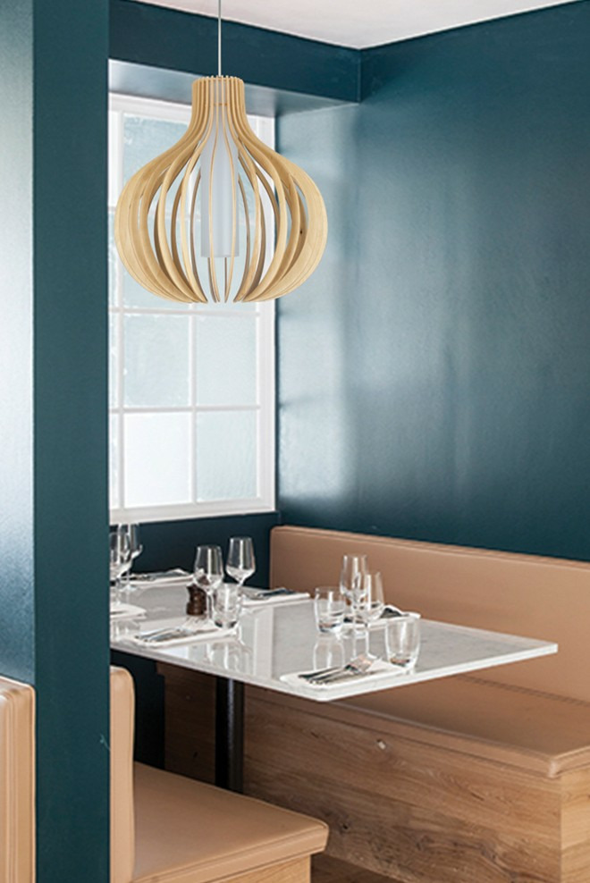 La suspension BOOGY pourra être présentée seule ou en grappe selon les ambiances et l'éclairage que vous souhaitez donner à vos espaces. Particulièrement décorative, elle exaltera vos chambres ou couloirs en y apportant toute la chaleur du bois. Recouvertes de leur vernis protecteur anti-tâches et anti-UV, les lames de bois de bouleau garderont leur éclat et leur teinte d'origine. Positionnée dans un tube polycarbonate central, sa source garantit un éclairage diffus et esthétique.