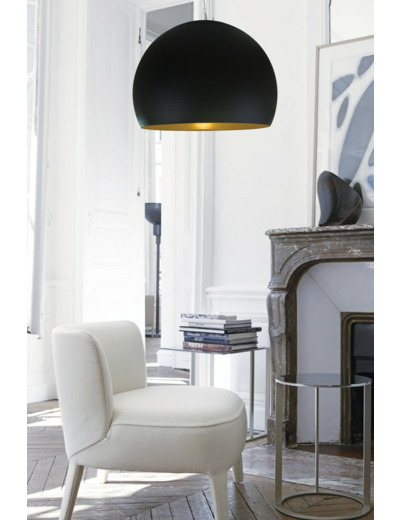 Demi-sphère lunaire, la suspension CAPUCINE Ø600mm diffuse un éclairage tamisé et une lumière douce. Contraste parfait au mobilier contemporain aux angles prononcés, elle s'inscrit dans la tendance cocooning. Equipée d'une source circline de 32W Fluo, elle apportera un grand confort lumineux et vous bercera par sa lumière apaisante.