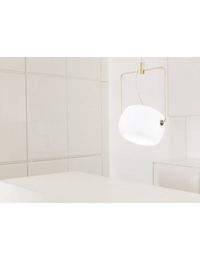 Enserré dans une structure en acier, le réflecteur opalin de la suspension GALET peut être orienté à loisir pour un éclairage optimal.