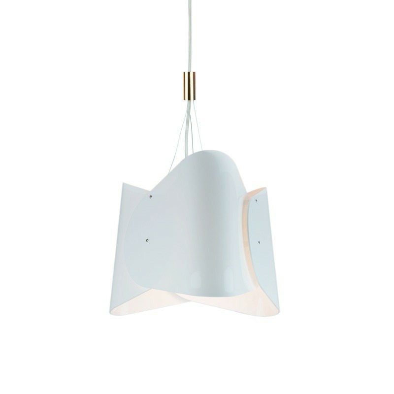 SOSTI est une suspension imaginée comme une figure géométrique aérienne. Constituée de 3 feuilles en PMMA judicieusement imbriquées, elle enveloppe une source lumineuse LED permettant un éclairage ciblé. Elle offre un design élégant et léger grâce à ses filins et son décor en laiton.