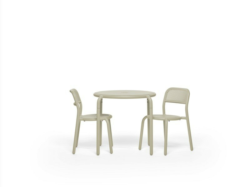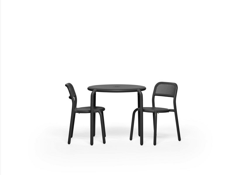 Avec la table de bistrot ronde Toní, crée l'agencement idéal de jardin ou de terrasse en un clin d'oeil. L'aluminium léger rend la table de jardin pliable facile à déplacer. La table Toní Bistreau offre également une fonction deux-en-un très pratique : le trou situé au milieu peut servir de porte-parasol le jour et de chandelier la nuit. Le secret ? Le dos de la plaque contient un chandelier. Tu souhaites ajouter un côté romantique ? Utilise le chandelier Toní adapté pouvant supporter trois bougies (vendues séparément). De cette façon, tu pourras de détendre à l'extérieur le jour comme la nuit. Allez, sers-toi encore un coup.Le plateau rond de 80x80 cm s'adaptera facilement sur ton balcon ou ta terrasse. Les pieds réglables permettent de régler facilement la hauteur. Parce qu'il est traité avec le revêtement extérieur de la plus haute qualité, la table Toní Bistreau est antirouille, résiste aux intempéries et ne décolore pas. Tu es tombé amoureux de la table de bistrot Toní ? Complète ton ensemble avec la chaise de jardin Toní assortie, le coussin de chaise Toní et le set de table Place-we-met. Choisis ta couleur préférée.