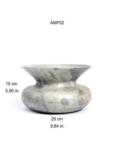 Depuis Minas Gerais, ALVA travaille - entre autres matériaux - avec de la pierre ollaire, un matériau typique de l'État. C'est à la fois un matériau résistant et doux, facile à façonner en de nombreuses formes polyvalentes, sculpturales ou utilitaires. Une autre particularité de la pierre à savon est sa large gamme de couleurs, et parce qu'il s'agit d'un matériau naturel, chaque pièce présente une tonalité de couleur unique.