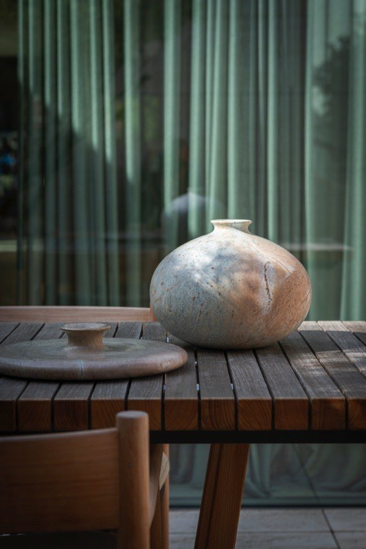 Depuis Minas Gerais, ALVA travaille - entre autres matériaux - avec de la pierre ollaire, un matériau typique de l'État. C'est à la fois un matériau résistant et doux, facile à façonner en de nombreuses formes polyvalentes, sculpturales ou utilitaires. Une autre particularité de la pierre à savon est sa large gamme de couleurs, et parce qu'il s'agit d'un matériau naturel, chaque pièce présente une tonalité de couleur unique.