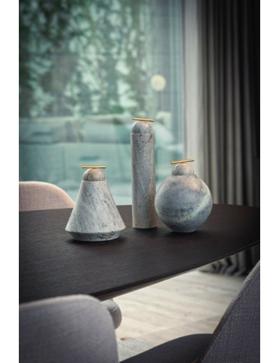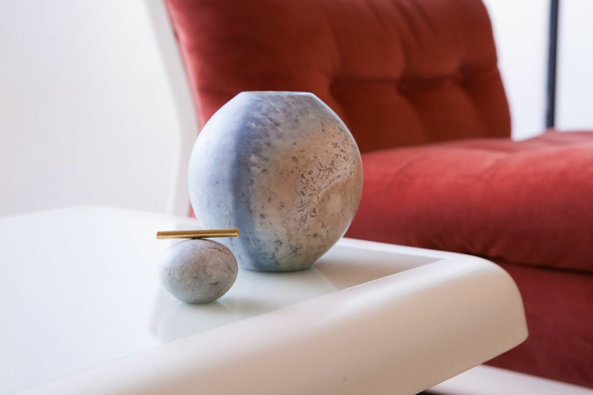 Depuis Minas Gerais, ALVA travaille - entre autres matériaux - avec de la pierre ollaire, un matériau typique de l'État. C'est à la fois un matériau résistant et doux, facile à façonner en de nombreuses formes polyvalentes, sculpturales ou utilitaires. Une autre particularité de la pierre à savon est sa large gamme de couleurs, et parce qu'il s'agit d'un matériau naturel, chaque pièce présente une tonalité de couleur unique.