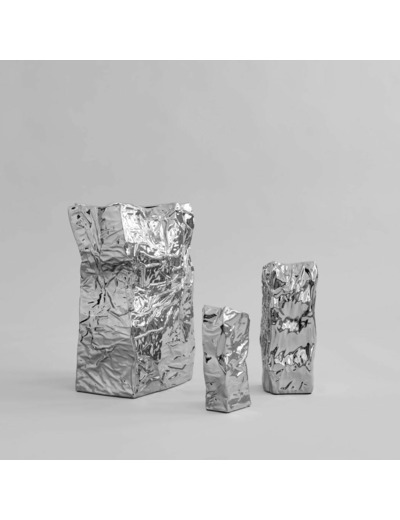 Kami est disponible en trois tailles et en deux coloris. Choisissez entre le blanc osseux éclatant, qui met en valeur l'imitation de sacs en papier froissés, ou la couleur Chrome avec une surface brillante semblable à un miroir, qui ajoute une expression élégante et moderne à l'intérieur.