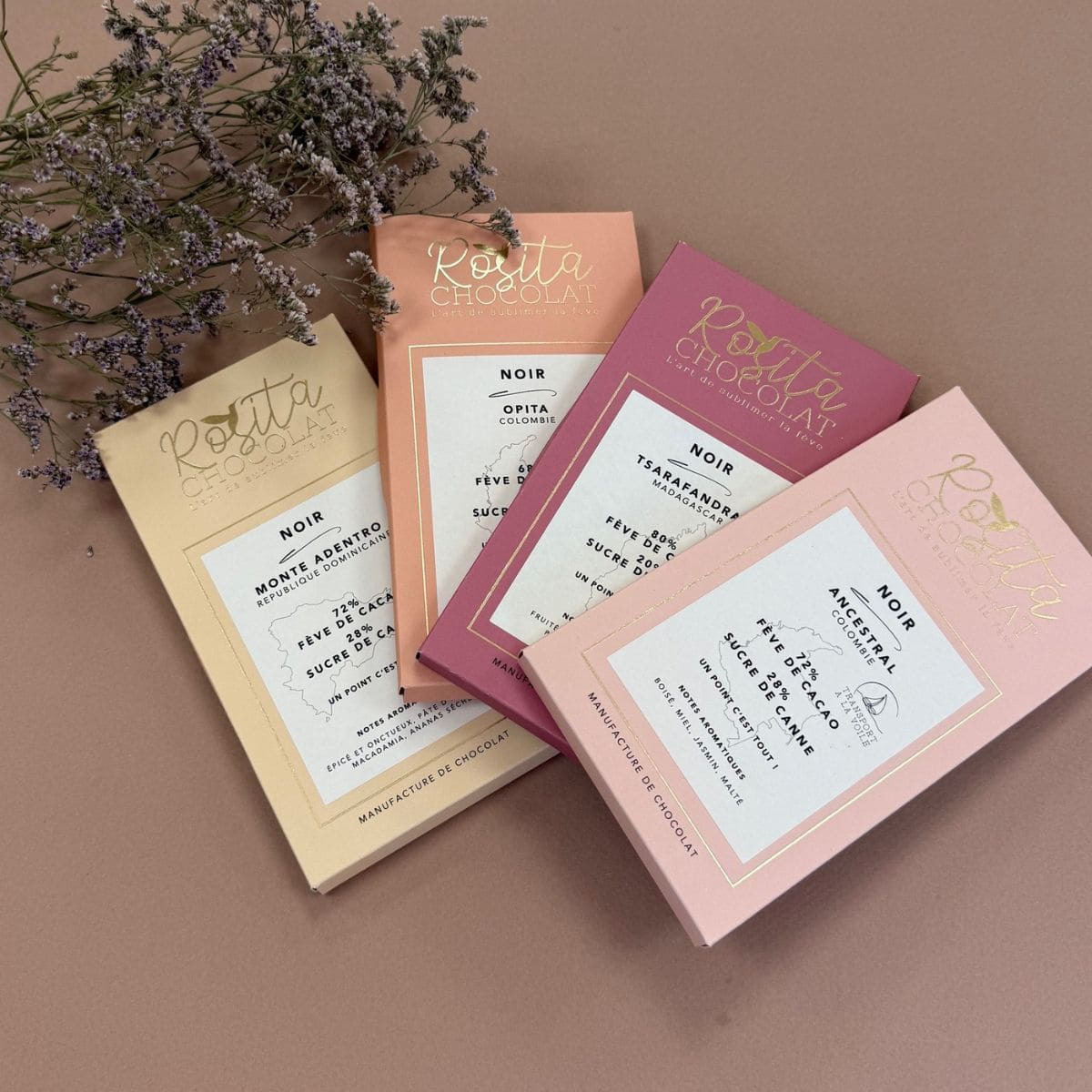 4 tablettes aux notes aromatiques très distinctes pour découvrir toute la richesse du cacao.