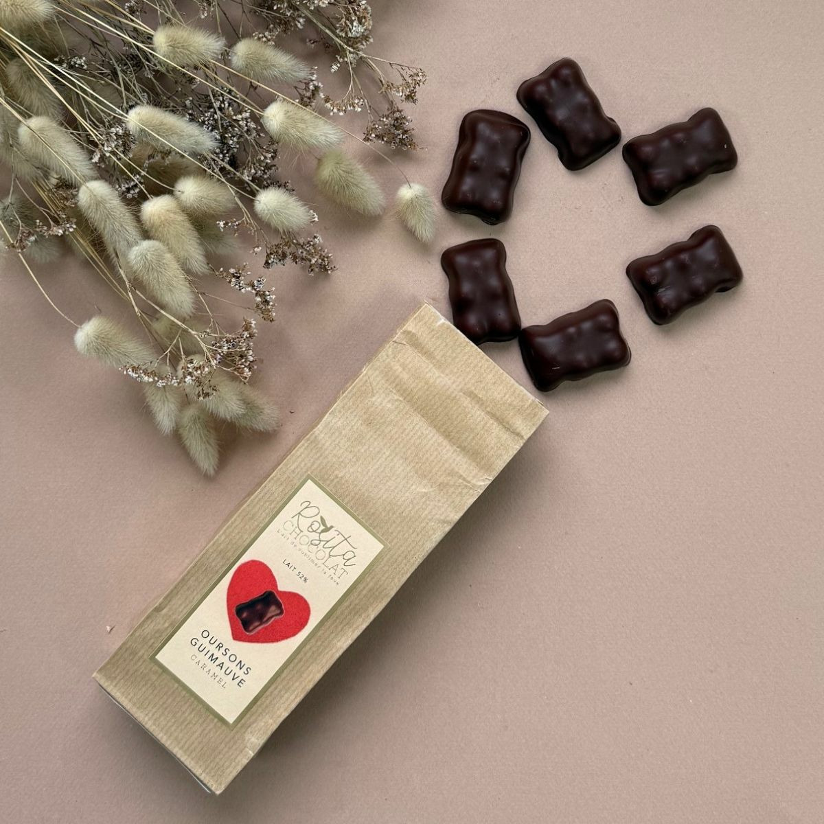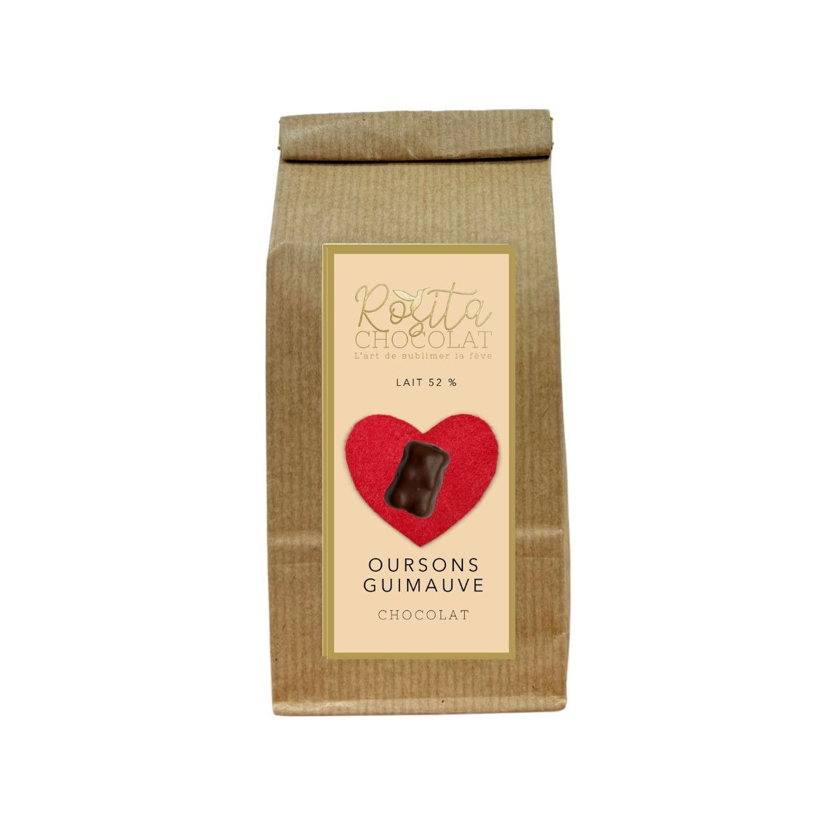 Des oursons guimauve avec un enrobage chocolat lait Sao Tomé et une guimauve caramel. Le cadeau idéal pour une Saint-Valentin pleine de douceur ! Croquant et fondant ces oursons guimauve offriront un moment gourmand à partager.