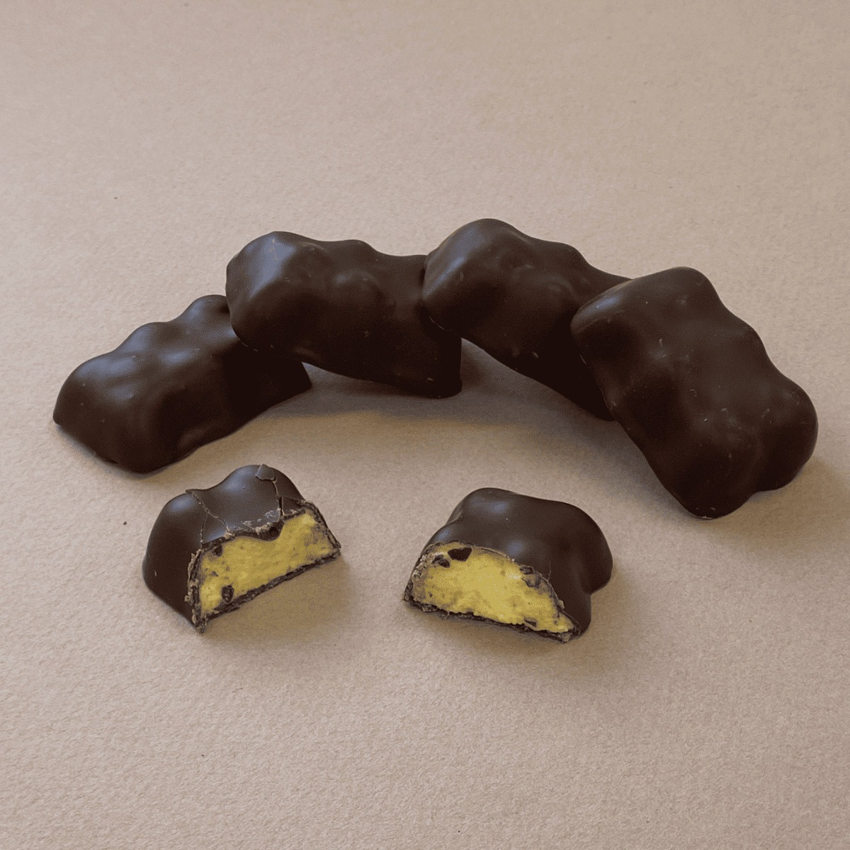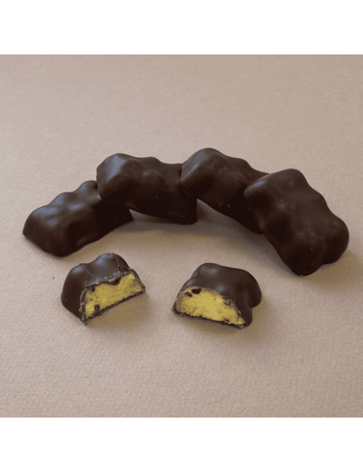 Des oursons avec un enrobage chocolat lait Palo Santo Equateur et une guimauve passion explosive en bouche.