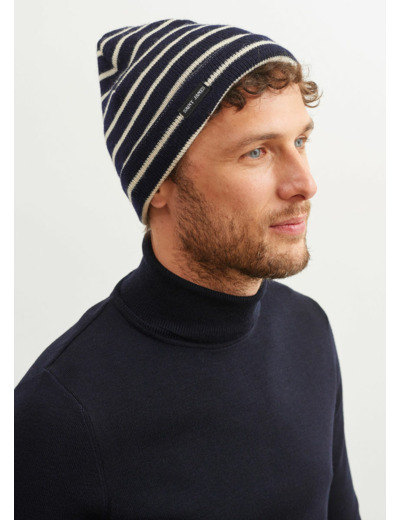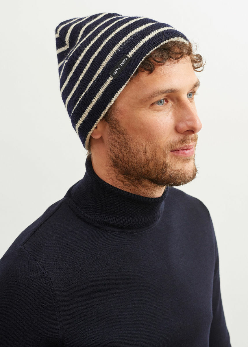 Célèbres pour leur longévité, les modèles Bonnets Saint James sont tricotés dans la même laine et dans un point identique aux pulls marins emblématiques, sollicités pour leur résistance et leur propriété isolante. Rayés ou unis, ces bonnets protègent du froid quand le tricotage serré limite l’absorption de la pluie.