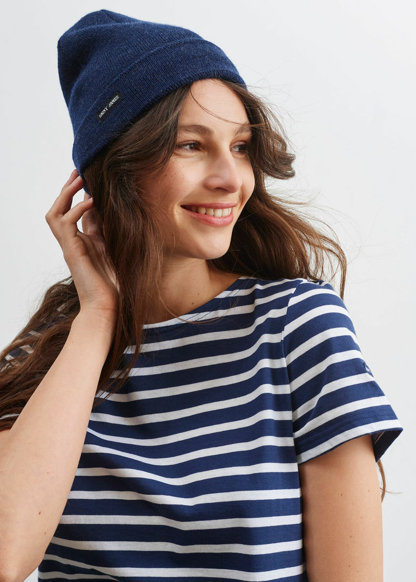 Célèbres pour leur longévité, les modèles Bonnets Saint James sont tricotés dans la même laine et dans un point identique aux pulls marins emblématiques, sollicités pour leur résistance et leur propriété isolante. Rayés ou unis, ces bonnets protègent du froid quand le tricotage serré limite l’absorption de la pluie.